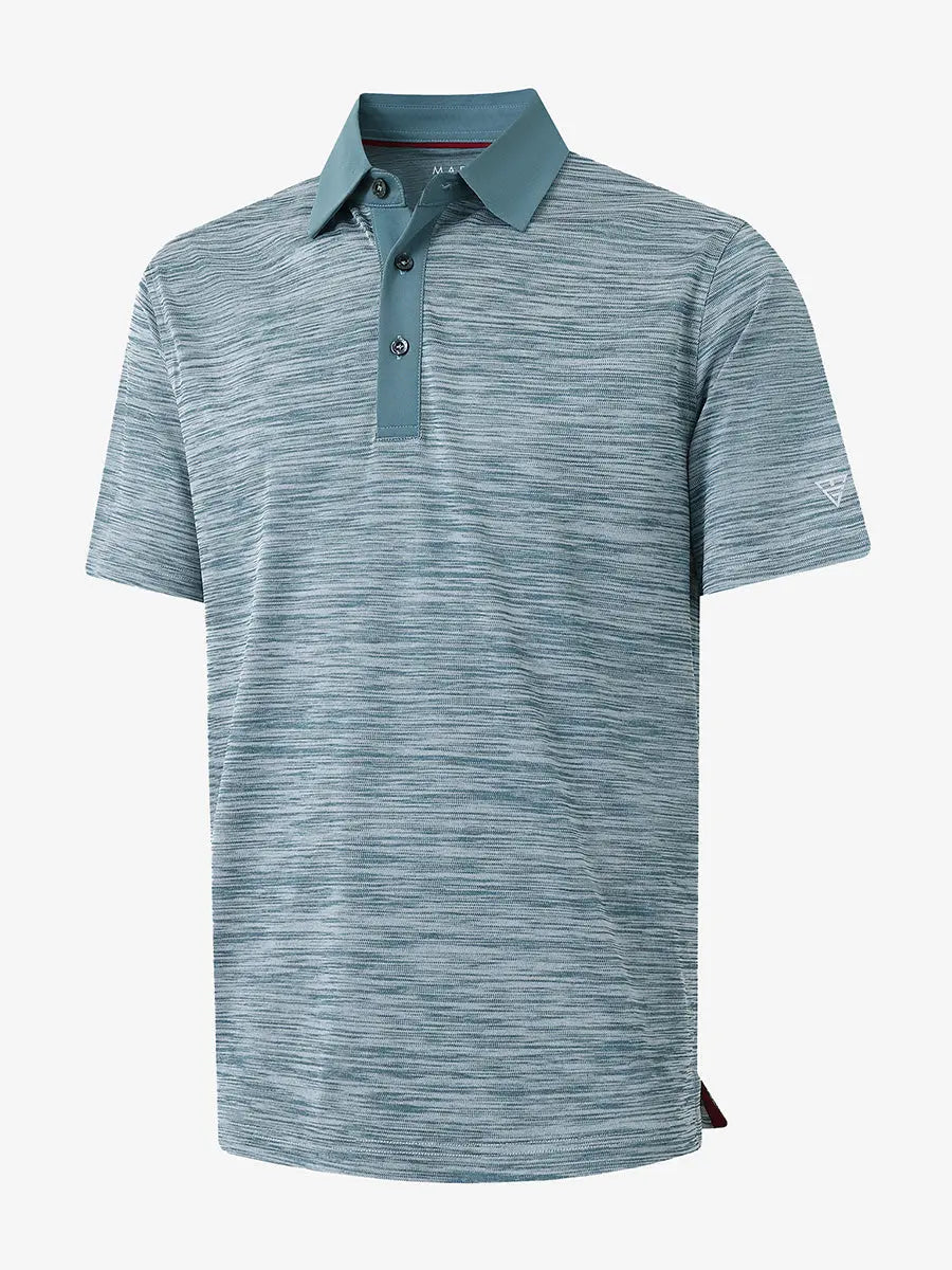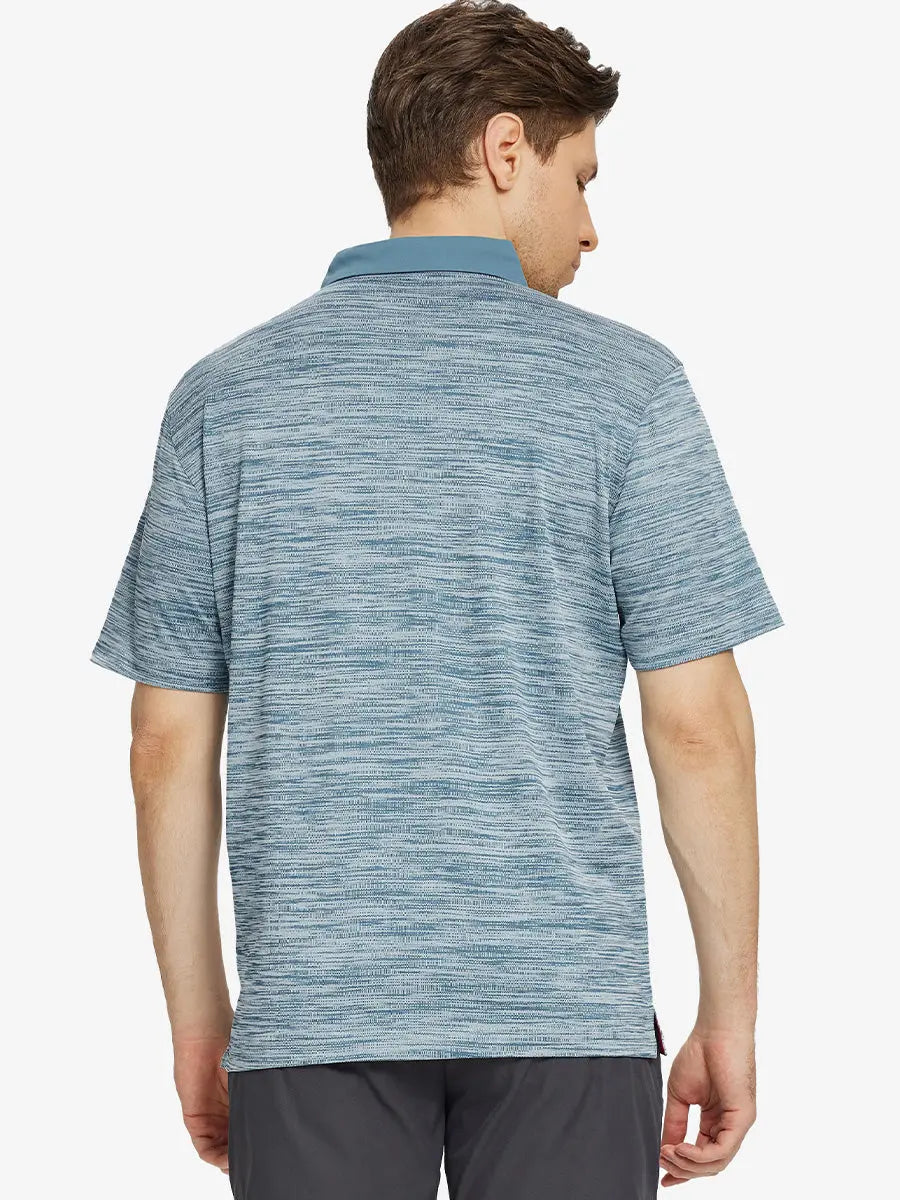Step up your style with the "Cool Heather Texture Polo." Versatile and easy to match, this men's casual shirt is perfect for various occasions. Crafted from pique fabric with a solid collar and placket, it exudes visual elegance and style. Featuring dry-fit technology, UPF30+ protection, softness, and 4-way stretch, this golf shirt keeps you comfortable, cool, and breathable while ensuring excellent mobility in all directions.